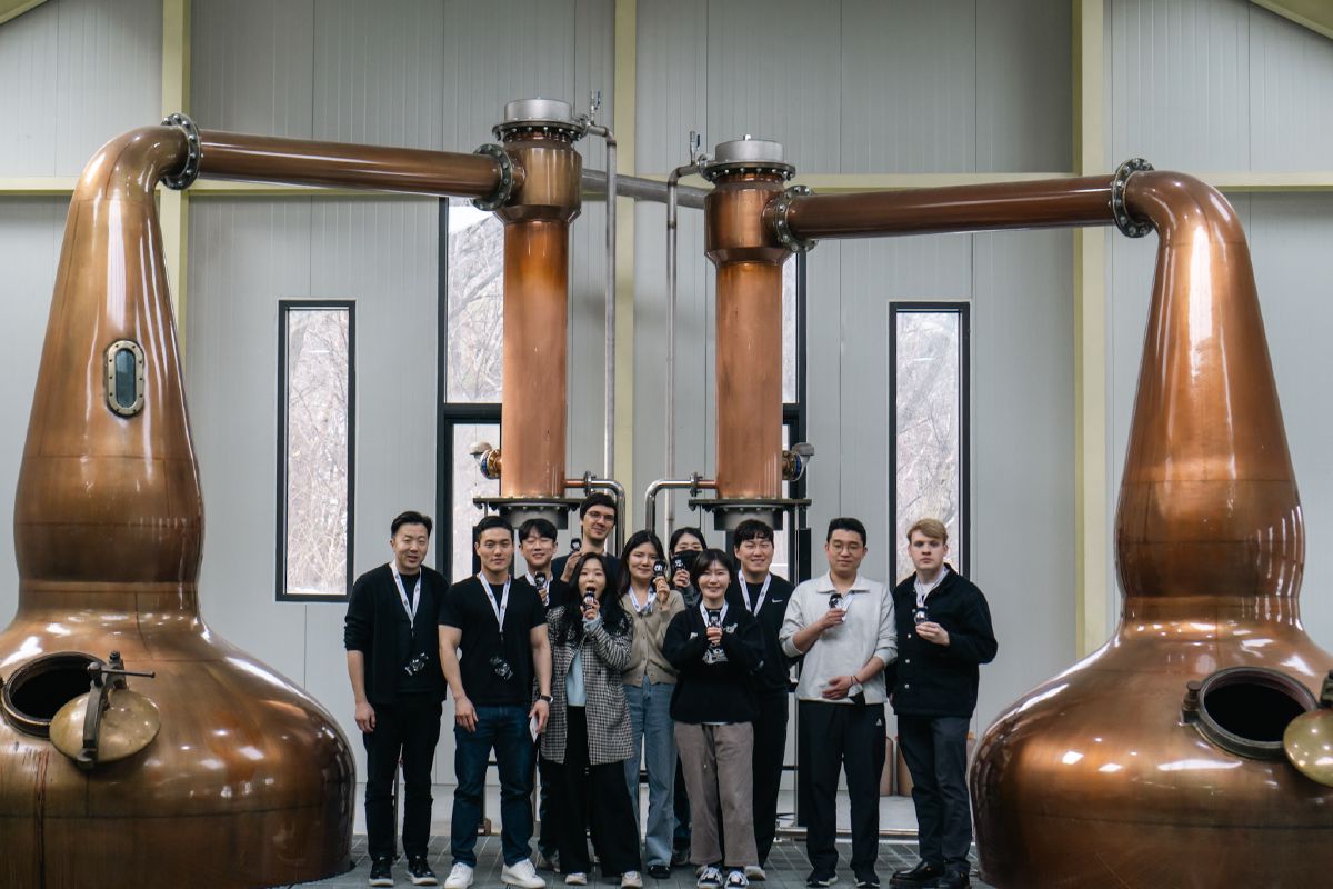 橡木桶堆到屋顶,有各种各样的木材。一些橡木桶的末端标有辣椒酱,这是韩国风味的融合。我们甚至有机会品尝直接从橡木桶中取出的威士忌,酒精度大约60%!每个人的喉咙都在燃烧!